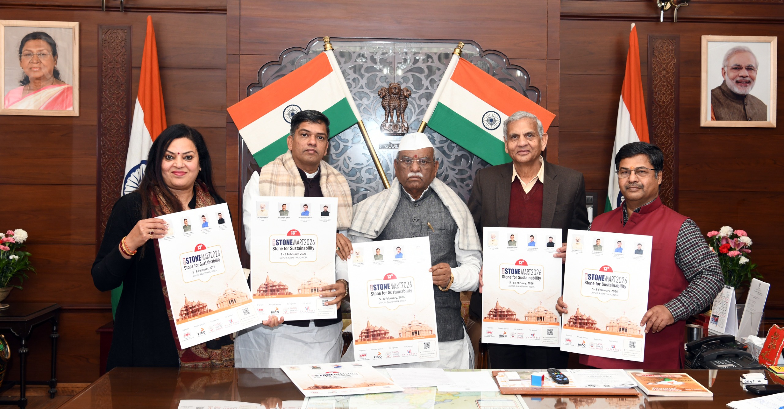 Jaipur: The official poster of Stone Mart India 2026 was unveiled by the Hon’ble Governor of Rajasthan. Dignitaries including Deputy CM Diya Kumari and Industry Minister Rajyavardhan Singh Rathore were formally invited for key events of the exhibition, scheduled from 5–8 February 2026 at JECC, Jaipur.